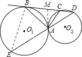 分析:(1)过A点作⊙O1和⊙O2的公切线AM,利用弦切角定理可得∠MAC=∠D,又MA、MB都是⊙O1的切线,就有MA=MB,故∠ABC=∠BAM,等量代换可证;