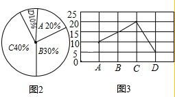 分析 (1)根据选A的人数及在扇形中所占的比例即可得出九年级一班的学生总数,设选答案C的人数为x,则选答案B的人数为(x-5)人,选答案D的人数为$\frac{1}{4}$x人,根据题意列出方程即可求得.