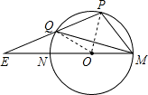 如图,MN是⊙O的直径,若∠E=25°,∠PMQ=35°,则∠MQP=