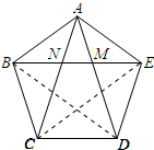 分析 由正五边形的性质可得AB=BC=CD=DE=AE,∠BAE=∠AED=∠CDE=108°,证出BE∥CD,AC∥DE,根据有一组邻边相等的平行四边形是菱形即可证得①正确;由SAS证明△ABE≌△EAD,得出BE=AD,同理:AC=BE=BD=CE,得出②正确;由AAS证明△AEN≌△EDM,得出③正确;即可得出结果.