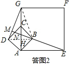 (3)连结BD交AG于点H,连结GB,如答图2,由于正方形ABCD绕点A逆时针旋转45°,BD与AC互相垂直平分,且AC在AG上,由AB=3$\sqrt{2}$可得到AH=DH=3,所以GH=7-3=4,然后根据勾股定理可计算出DG=5,则BE=5,解着利用S△DBG=$\frac{1}{2}$BD•GH=$\frac{1}{2}$DG•BM,可计算出BM,所以EM=BM+BE.