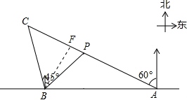 分析 过点B作BF⊥AC于点F.求出各角的度数,在Rt△BCF中,利用三角函数的知识解答.