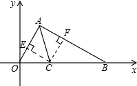 分析 先由A(1,$\sqrt{3}$),B(4,0)求出OA,AB,通过勾股定理逆定理得△AOB为直角三角形且∠ABO=30°,再过点D作AO和AB的垂线分别交AO和AB于E、F,由∠OAB的平分线AC得CE=CF,然后由△ACO和△ACB的面积和等于△AOB的面积求出CF,在直角三角形BFC中,由三角函数求出BC,从而求出OC.