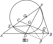 Èçͼ3£¬½«¡÷ADEÈÆ×ŵãDÐýת180¡ã£¬µÃµ½¡÷BDP£¬Á¬½ÓGP£¬¹ýµãP×÷PQ¡ÍBG£¬