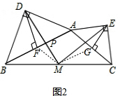 ÀíÓÉÈçÏ£ºÈçͼ2£¬ÉèABºÍDM½»ÓÚµãP£¬Á¬½ÓFM£¬GM£¬![]()