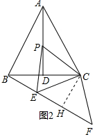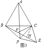 (3)过点C作CH⊥BE,垂足为H.由SAS证明△ACP≌△BCE,得出∠CBH=∠CAP=30°.由含30°角的直角三角形的性质得出HC=$\frac{1}{2}$BC=3.与等腰三角形的性质求出FH=EH.由勾股定理求出FH,即可得出EF的长.