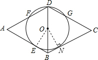 如图,已知O是菱形ABCD对角线BD上的一点,以O为圆心,OD为半径的⊙O与AB相切于E点,与AB、CD分别相交于F、G点.