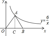 分析 作AC⊥x轴于C,如图,根据等腰三角形的性质得OC=BC,则利用三角形面积公式得到S△AOC=S△ABC,再利用反比例函数的比例系数k的几何意义得S△AOC=$\frac{1}{2}$•|6|=3,所以S△AOB=2S△AOC=6.