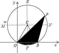 分析 (1)根据圆周角定理得到∠BCO=2∠BPO=60°,则可判断△OCB为等边三角形,则OC=OB=2,作CF⊥OB于F,交$\widehat{OwB}$于E,如图,根据垂径定理得到OF=BF=1,则可根据勾股定理计算出CF=$\sqrt{3}$,于是得到C(1,$\sqrt{3}$),然后利用两点间的距离公式得到(1-m)2+($\sqrt{3}$-2$\sqrt{3}$)2=22,再解方程即可得到即m的值;