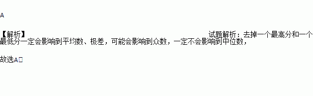 某区新教师招聘中,七位评委独立给出分数,得到一列数.若去掉一个最高分和一个最低分,得到一列新数,那么这两列数的相关统计量中,一定相等的是 ( )