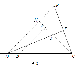 理由如下:如图2,作∠PDE=22.5,交CE的延长线于P点,交CA的延长线于N,