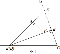 分析 (1)如图1,延长BA、CM交于点N,先证明BC=BN,得出CN=2CE,再证明△BAF≌△CAN,得对应边相等BF=CN,即可得出结论;