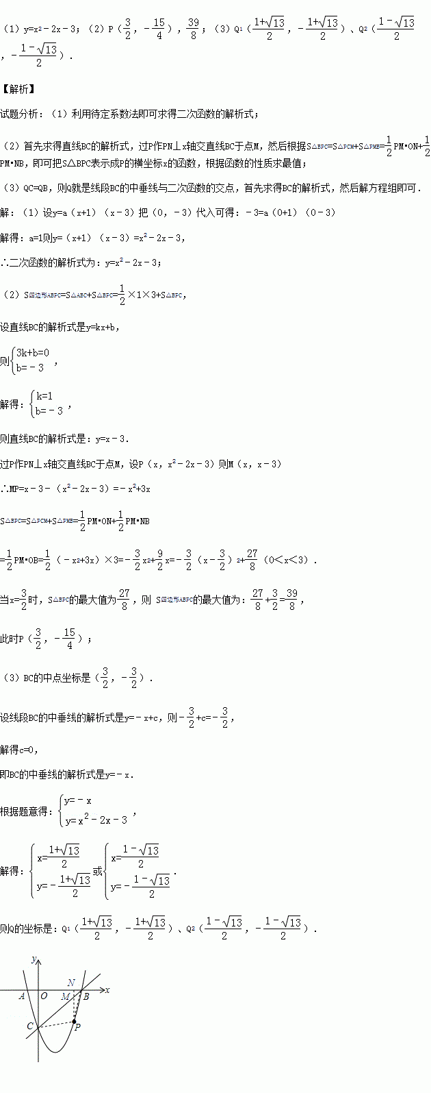 (3)在抛物线上,是否存在一点Q,使△QBC中QC=QB?若存在请直接写出Q点的坐标.
