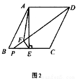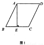 如图1,在□ABCD中,AE⊥BC于E,E恰为BC的中点,tanB=2。