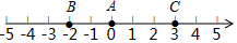 分析 画出数轴,然后确定出点C的位置,再向左5个单位确定出点B,向右2个单位确定出A,即可得解.