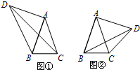 分析:根据题意,画出示意图,如图①,所示,根据AB=AD,∠BAD=90°求出∠BDA=45°,然后根据等腰三角形的性质和三角形内角和定理即可求出∠BDC的度数.同理可求图②∠BDC的度数.