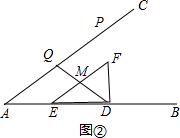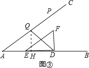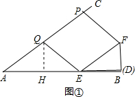 分析 (1)过点Q作QH⊥AB于H,如图①,易得PQ=EF=5,由AC∥EF可得四边形EFPQ是平行四边形,易证△AHQ∽△EDF,从而可得AH=ED=4,进而可得AH=HE=4,根据垂直平分线的性质可得AQ=EQ,即可得到PQ=EQ,即可得到平行四边形EFPQ是菱形;