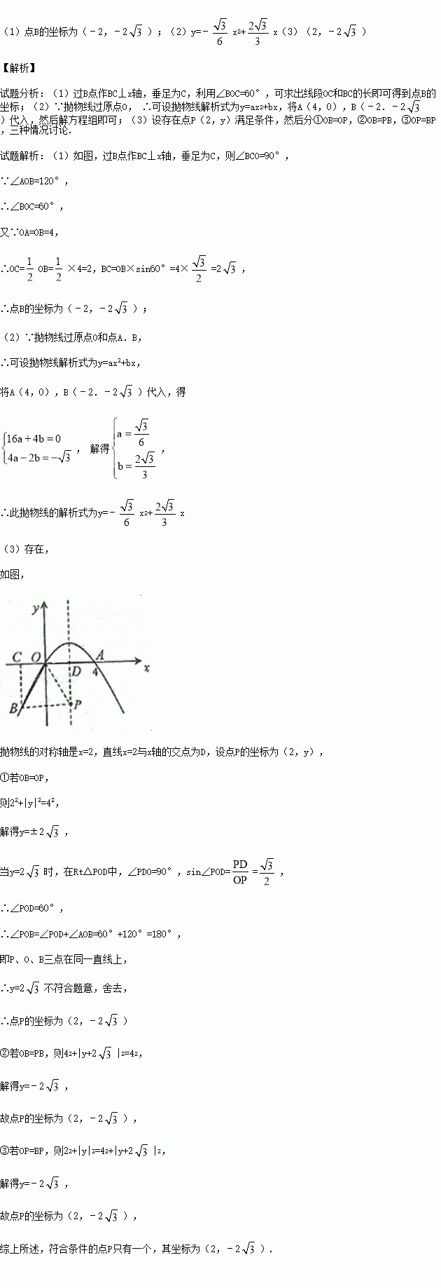 如图,点A在x轴上,OA=4,将线段OA绕点O顺时针旋转120°至OB的位置.