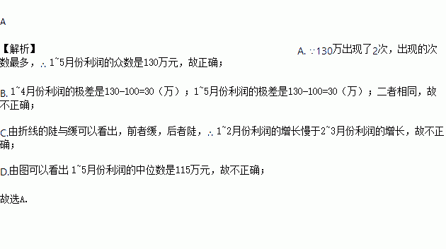 B. 1~4月份利润的极差与1~5月份利润的极差不同