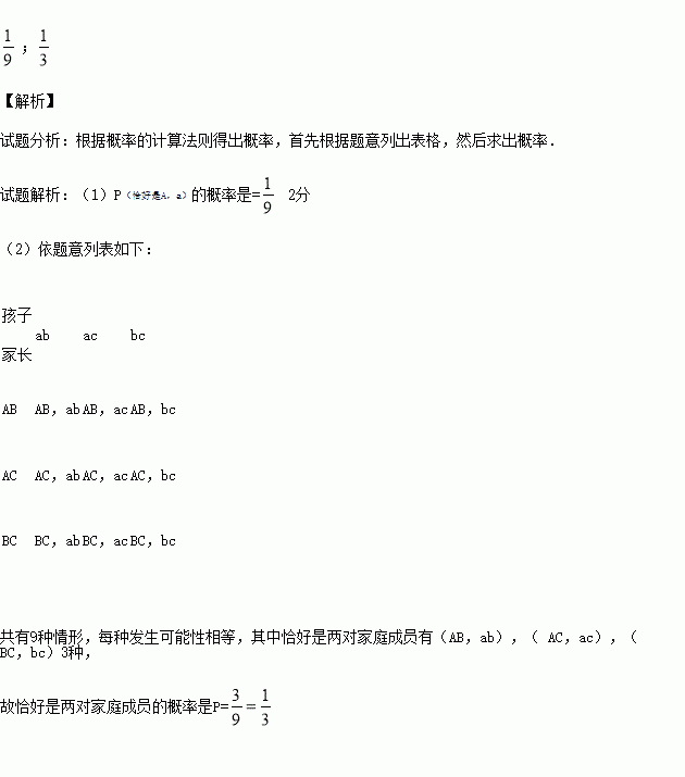 (1)若主持人分别从三位家长和三位孩子中各选一人参加游戏,恰好是A、a的概率是多少(直接写出答案)