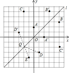 (1)由图观察易知A(0,2)关于直线l的对称点A'(2)的坐标为(2,0),请在图中分别标明B(5,3)、C(-2,5)关于直线l的对称点B′、C′的位置,并写出他们的坐标:B' _________ 、C' _________