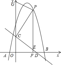 (2)先根据坐标轴上点的坐标特征确定C(0,3),D(4,0),则CD=5,设P(m,-m2+4m+5),则E(m,-$\frac{3}{4}$m+3),F(m,0),根据平行线分线段成比例定理,由EF∥OC得到CE:m=5:4,则CE=$\frac{5}{4}$m(0<m<5);