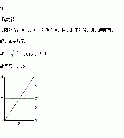 (2015秋•江阴市期中)如图,一个上方无盖的长方体盒子紧贴地面,一只蚂蚁由盒外A处出发,沿着盒子面爬行到盒内的点B处,已知,AB=9,BC=9,BF=6,这只蚂蚁爬行的最短距离是 .