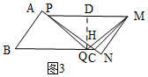 (3)如图3,过点Q作QD⊥PM于点D,QD交AC于点H.![]()
