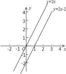分析:由一次函数的图象是一条直线,而两点确定一条直线,在直线上取两点即可画出直线y=2x-2的图象,再根据“上加下减”的平移规律得出向上平移2个单位的直线,即可得解.