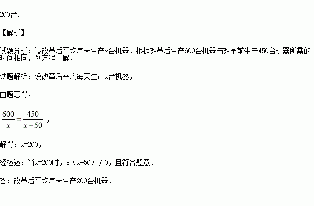 某工厂现在平均每天比原计划多生产50台机器,现在生产600台机器所需时间与原计划生产450台机器所需时间相同,则现在平均每天生产多少台机器?