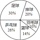 ijѧУÆßÄê¼¶Èý°àÓÐ50ÃûѧÉú£¬ÏÖ¶ÔѧÉú×îϲ»¶µÄÇòÀàÔ˶¯½øÐÐÁ˵÷²é£¬¸ù¾Ýµ÷²éµÄ½á¹ûÖÆ×÷ÁËÉÈÐÎͳ¼ÆÍ¼£¬ÈçͼËùʾ£®¸ù¾ÝÉÈÐÎͳ¼ÆÍ¼ÖÐÌṩµÄÐÅÏ¢£¬¸ø³öÒÔϽáÂÛ£º¢Ù×îϲ»¶×ãÇòµÄÈËÊý×î¶à£¬´ïµ½ÁË15ÈË£»¢Ú×îϲ»¶ÓðëÇòµÄÈËÊý×îÉÙ£¬Ö»ÓÐ5ÈË£»¢Û×îϲ»¶ÅÅÇòµÄÈËÊý±È×îϲ»¶Æ¹ÅÒÇòµÄÈËÊýÉÙ3ÈË£»¢Ü×îϲ»¶Æ¹ÅÒÇòµÄÈËÊý±È×îϲ»¶ÀºÇòµÄÈËÊý¶à6ÈË£®ÆäÖÐÕýÈ·µÄ½áÂÛÓÐ