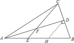 解答 解:过D作DH∥CE于H,∵AB=AC,∠ADB=90°,∴BD=CD,∴BH=EH,∵E是线段AB的三分之一点,∴AE=EH,∴AF=DF,∴点F是AD的中点.