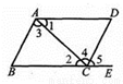 如图,下列条件中:(1)∠B+∠BCD=180°;(2)∠1=∠2; (3)∠3=∠4;(4)∠B=∠5;能判定AB//CD的条件个数有( )