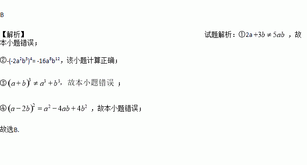 ;②-(-2a2b3)4= -16a8b12;③