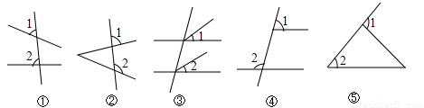 如图,∠1和∠2是同位角的图形有 ( )