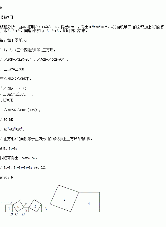 (2015秋•扬州校级月考)如图,已知1号、4号两个正方形的面积和为7,2号、3号两个正方形的面积和为4,则a,c这2个方形的面积和为( )