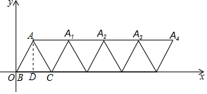 分析 根据等边三角形的性质易得OA=BC=4,∠AOC=60°.过点A作AD⊥x轴于D,求出BD=DC=$\frac{1}{2}$BC=2,AD=OA•sin∠AOD=4×$\frac{\sqrt{3}}{2}$=2$\sqrt{3}$,那么A(2,2$\sqrt{3}$).再利用旋转与平移的性质分别求出A1(2+4,2$\sqrt{3}$),A2(2+4×2,2$\sqrt{3}$),A3(2+4×3,2$\sqrt{3}$),依此类推即可求出A2017的坐标.