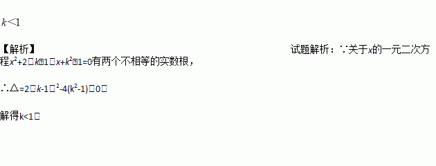 若关于x的一元二次方程x2+2(k﹣1)x+k2﹣1=0有两个不相等的实数根,则k的取值范围是____________________.