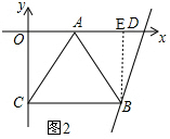 (2)首先作BE⊥x轴于点E,根据以AB为半径的⊙B与y轴相切于点C,判断出∠OCB=90°,再根据△ABC是等边三角形,推得∠ACO=30°,所以AC=2OA;然后根据A(4,0),可得OA=4,应用勾股定理,求出点B的坐标是多少即可.