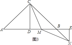③如图3所示,若点N在边CB上,可知点M在线段BD上,且点E在边AB的延长线上.