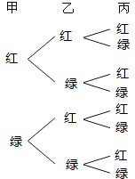 (2)∵由上可知评委给出A选手所有可能的结果有8种.并且它们是等可能的,至少两次绿灯的3种,