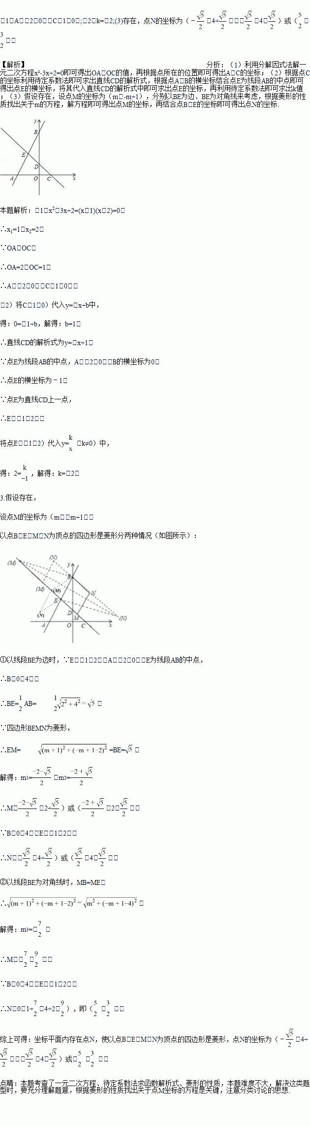 (3)在(2)的条件下,点M在直线CD上,坐标平面内是否存在点N,使以点B,E,M,N为顶点的四边形是菱形?若存在,请直接写出满足条件的点N的坐标;若不存在,请说明理由.