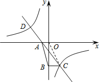 (2)连接OC,根据条件可知S△ABC=S△OBC=$\frac{1}{2}$|n|,可求得n,可得到双曲线的解析式.