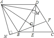分析:首先利用菱形的性质得出AB=AD,又由AB=BD得出△ABD是等边三角形,进一步证明△CDE≌△DBF,得出∠BGE=∠DGF=60°,证得四边形ABGD是圆内接四边形,过点A再分别作AM⊥DE,AN⊥BF,证明△ABN≌△ADM,把四边形ABGD的面积转化为四边形AMGN的面积即可.