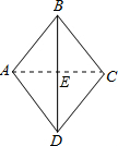 解答 解:连接AC交BD于点E,则∠BAE=60°,AE⊥BD,∵菱形ABCD的周长为14.4,∴AB=3.6,在RT△ABE中,AE=ABsin∠ABE=1.8,故可得AC=2AE=3.6.故答案为3.6.