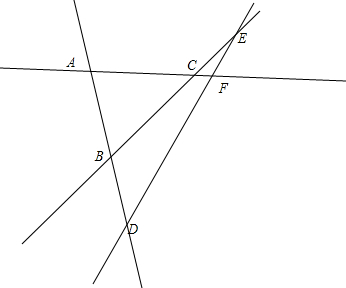 已知三条直线两两相交于A、B、C三点,第四条直线DF交直线AB于D,交直线BC于E,交直线AC于F,问共产生几条线段?并根据题意画出图形.