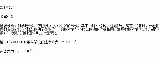 (2015•重庆校级二模)“厉行勤俭节约,反对铺张浪费”势在必行,最新统计数据显示,中国每年浪费食物总量折合粮食大约是210000000人一年的口粮.将210000000用科学记数法表示为 .