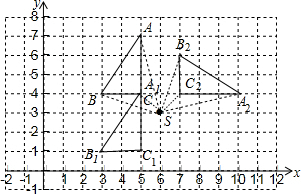 解答 解:(1)如图,△A1B1C1为所求;(2)如图,△A2B2C2为所求.