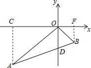 分析 首先过点A作AC⊥x轴于C,过点B作BF⊥x轴于F,易得∠OAC=∠AOD=α,又由∠AOB=90°,易得∠BOF=∠AOD=α,即可得在Rt△AOC中,sinα=$\frac{OC}{OA}$,在Rt△BOF中,cosα=$\frac{OF}{OB}$,又由S△AOB求得OA•OB的值,继而求得答案.