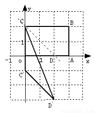 (3)如果将(2)中的线段CD向下平移3个单位长度,得到对应线段C′D′,在平面直角坐标系中画出△CD′C′,并求出它的面积。